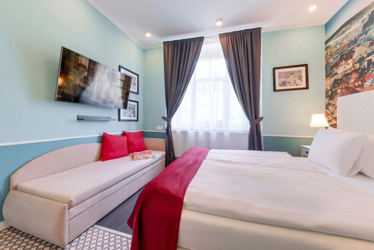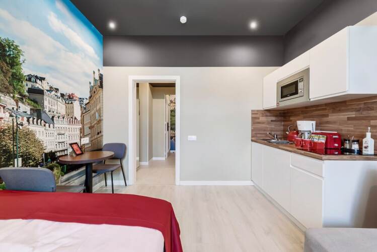 Отель Revelton Studios Prague, адрес на карте Прага, 124 Nuselská, с описанием номеров и доступностью онлайн бронирования на сайте vashotel.ru , цены проживания и удобства.