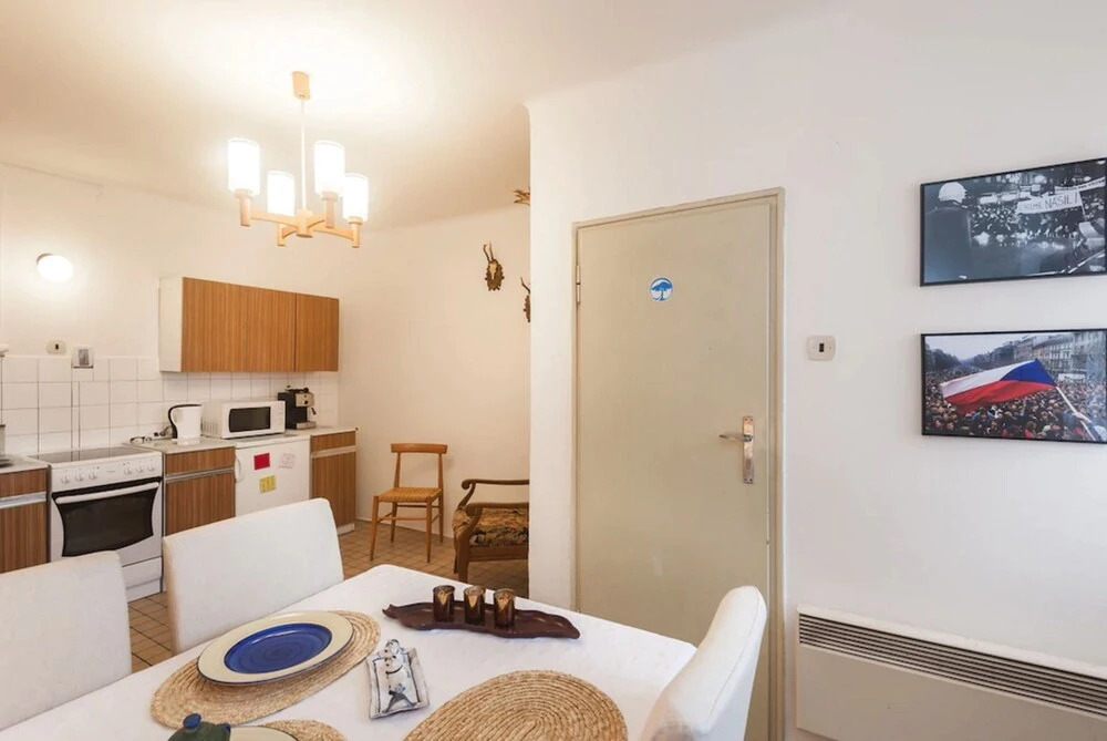 Отель Velvet Revolution Apartment, адрес на карте Прага, Staromestské námestí 16, с описанием номеров и доступностью онлайн бронирования на сайте vashotel.ru , стоимость проживания и удобства.