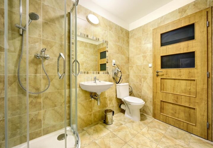В номере вы найдёте душ и телевизор. Оснащение зависит от выбранной категории номера.