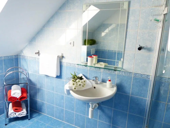 В номере вы найдёте душ и телевизор. Оснащение зависит от выбранной категории номера.