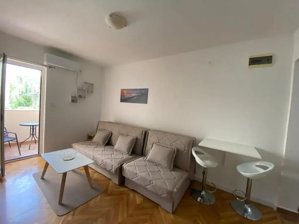 Отель Studio Apartment Hana, адрес на карте Бечичи, Sremskog Fronta Tri palme, I sprat, с описанием номеров и возможностью онлайн бронирования на ресурсе vashotel.ru , стоимость проживания и удобства.