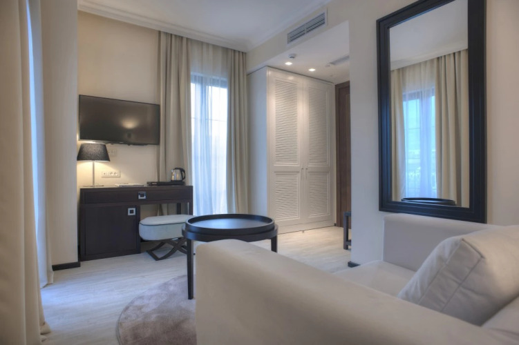 В номере вас будут ждать халат и тапочки. Оснащение зависит от выбранной категории номера.