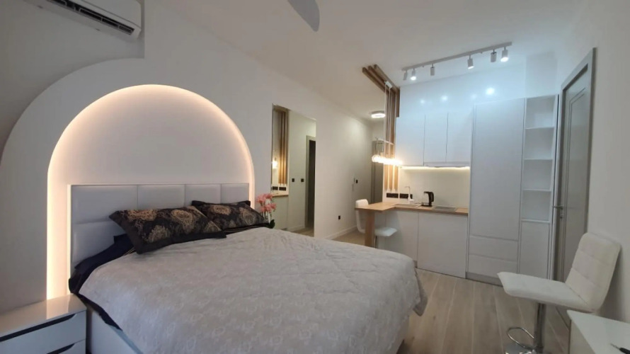 Отель Luminous Apartment with Balcony near Budva Riviera, адрес на карте Будва, 4 Rakita, Budva, Montenegro, с описанием номеров и доступностью онлайн бронирования на сайте vashotel.ru , стоимость проживания и удобства.