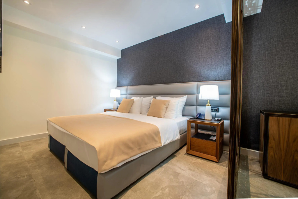 Номер уютно обставлен и оснащён необходимым, чтобы отдохнуть после долгого и насыщенного дня. Имеются душ, телевизор, мини-бар и тапочки. Оснащение зависит от выбранной категории номера.