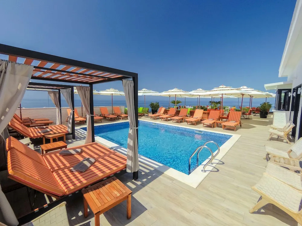 Отель Apartments Kalamper 4 звезды, адрес на карте Добро Вода, Veliki Pijesak, с характеристиками номеров и доступностью онлайн бронирования на ресурсе vashotel.ru , цены проживания и удобства.