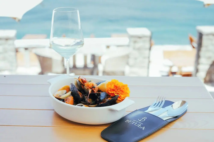 В ресторане, расположенном на пляже, вам предложат завтрак, поздний завтрак, обед и ужин. Вы можете попробовать блюда из свежевыловленных морепродуктов, вкуснейшую выпечку и прочие изысканные кушанья, любуясь восходом солнца над бескрайним морем.