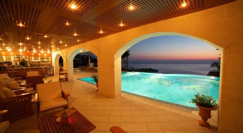 Среди услуг для красоты и здоровья — массажный кабинет и паровая баня. Специально к услугам гостей, не упускающих возможность заняться спортом, фитнес-центр. Здесь будем баловать себя водными процедурами: есть бассейн. Чтобы забронировать экскурсию, обратитесь в экскурсионное бюро виллы.