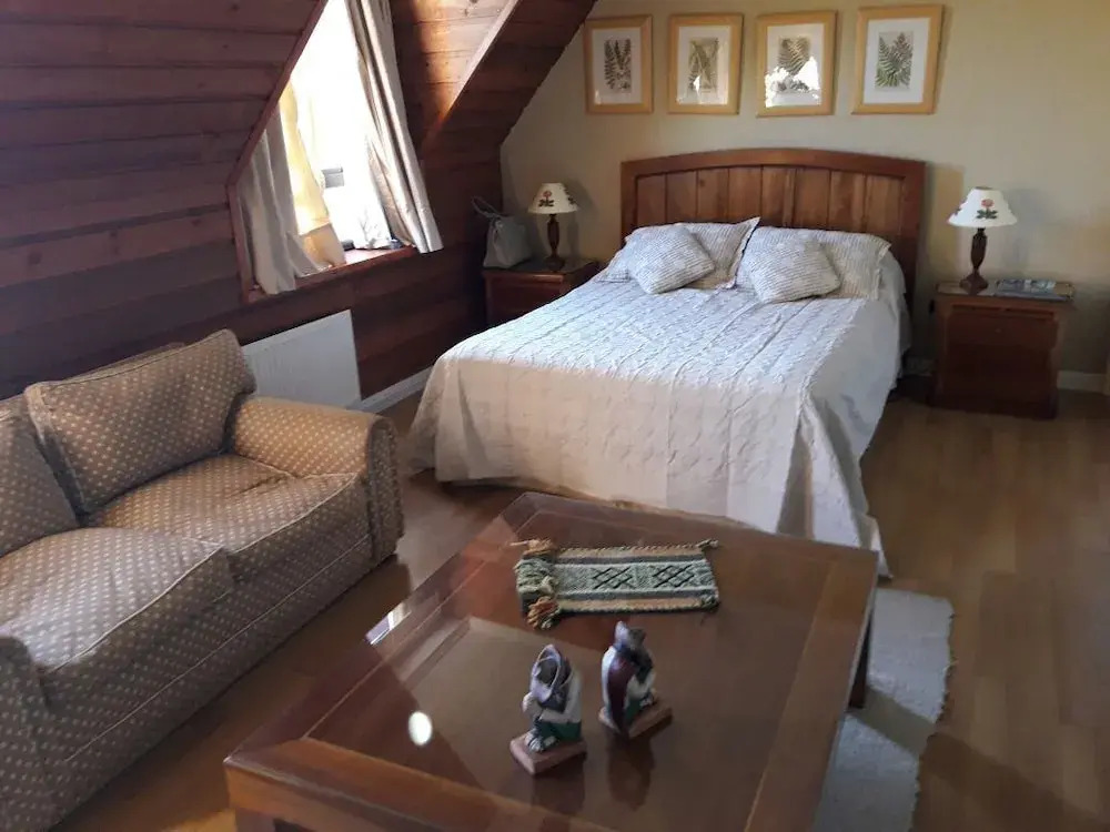 Отель Departamento Los Cerros, адрес на карте Пукон, Ramon Quezada 275, с характеристиками номеров и возможностью онлайн бронирования на площадке vashotel.ru , цены проживания и удобства.
