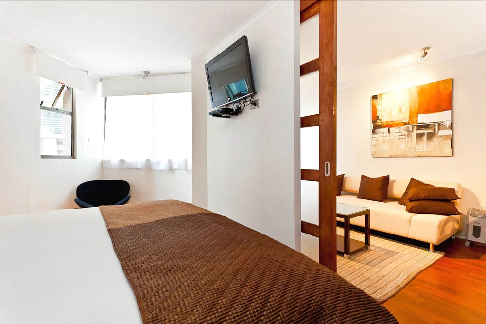 Отель Bellas Artes Apart, адрес на карте Сантьяго, 547 Paseo Huerfanos, с описанием номеров и правом онлайн бронирования на ресурсе ВашОтель.RU , стоимость проживания и удобства.