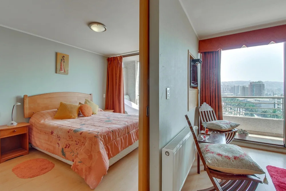 Отель Departamento Fascinante en Valparaiso, адрес на карте Вальпараисо, General Cruz 151, dpto. 1305, с описанием номеров и доступностью онлайн бронирования на площадке ВашОтель.RU , цены проживания и удобства.
