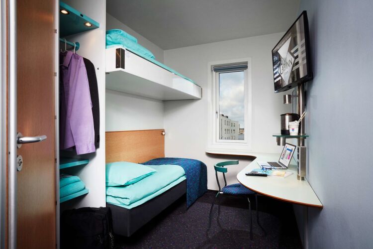 Отель CABINN Aalborg Hotel 2 звезды, адрес на карте Алборг, Fjordgade 20, с характеристиками номеров и доступностью онлайн бронирования на ресурсе vashotel.ru , стоимость проживания и удобства.