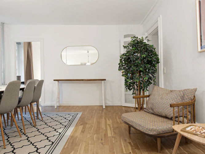 Отель Sanders Stage - Cozy 4-bdr Apt Near Nyhavn 3 звезды, адрес на карте Копенгаген, Holbergsgade 28 A, с описанием номеров и доступностью онлайн бронирования на ресурсе vashotel.ru , стоимость проживания и удобства.