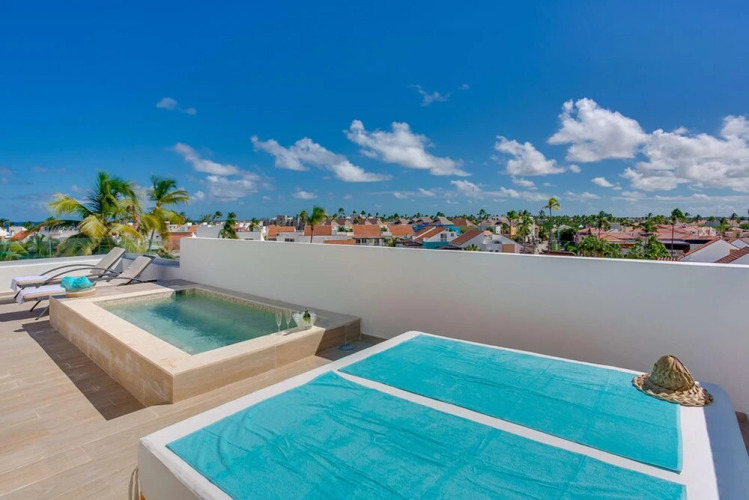 Отель Modern Luxury Penthouse With Private Rooftop Picuzzi Steps From the Beach, адрес на карте Баваро, Calle Marcio Maggiolo, с описанием номеров и возможностью онлайн бронирования на сайте ВашОтель.RU , стоимость проживания и удобства.