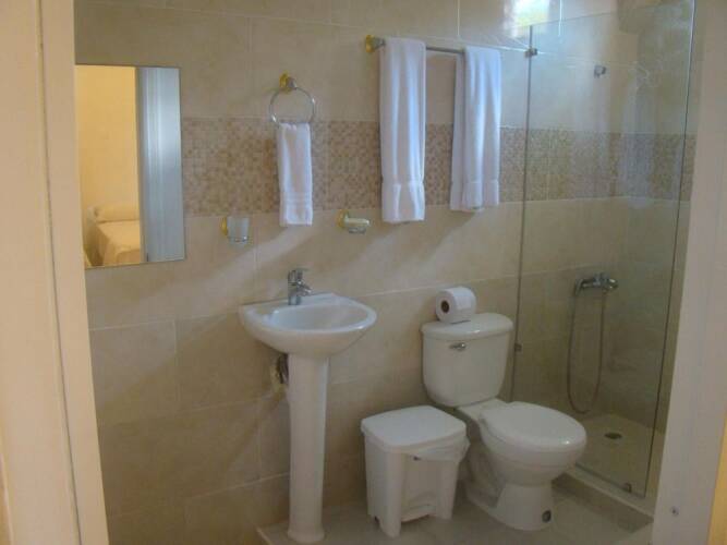 В номере вы найдёте душ и телевизор. Оснащение зависит от выбранной категории номера.