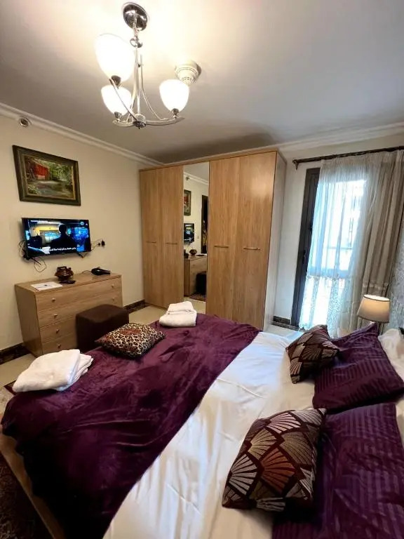 Подходящий вариант для бюджетного отдыха — отель «Elegant duplex with pool frontAUC» находится в Каире. Этот отель располагается в 25 км от центра города. Рядом с отелем — Сити Старс, Университет Аль-Ажар и Музей исламского искусства.
