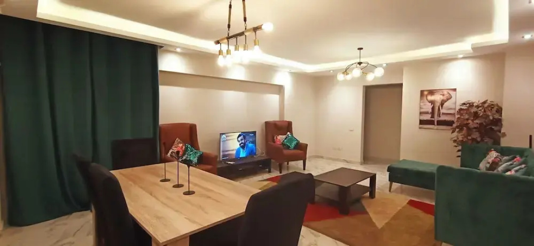 Подходящий вариант для большой компании: апартаменты «Smart Luxury Apartment in new Building of Compound» находятся в Каире. Эти апартаменты расположены в 13 км от центра города. Рядом с апартаментами — Сити Старс, Университет Аль-Ажар и Музей исламского искусства.