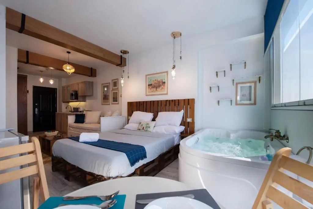 В поисках домашнего уюта: апартаменты «Jacuzzi By The Historic Giza Pyramids - Apartment 2» находятся в Гизе. Эти апартаменты располагаются в 7 км от центра города. Рядом с апартаментами — Университет Каира, Ботанический сад Орман и Каирская опера.