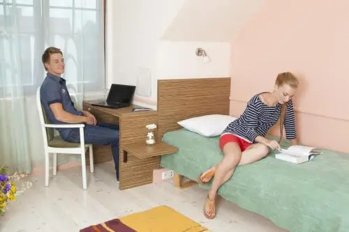 Номер уютно обставлен и оснащён необходимым, чтобы отдохнуть после долгого и насыщенного дня. Имеются душ и телевизор. Оснащение зависит от выбранной категории номера.