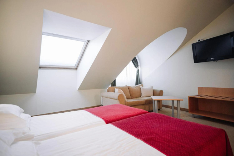 Обратите внимание, что в этом отеле под двуспальной кроватью подразумеваются две односпальные кровати, сдвинутые вместе. Поэтому тип кровати в номере может меняться.