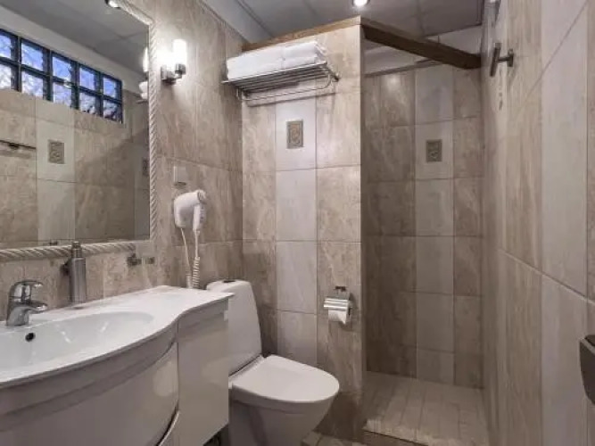 В номере вы найдёте телевизор. Оснащение зависит от выбранной категории номера.