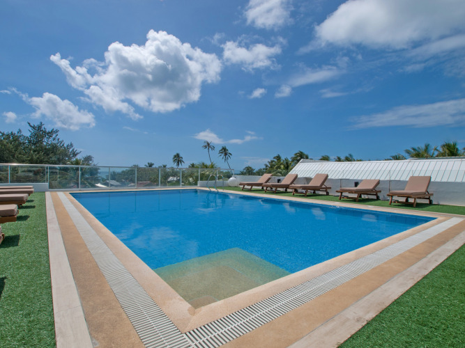 Также для гостей в отеле: массажный кабинет, спа-центр и врач. Любителям спорта подготовили фитнес-центр, тренажёрный зал и дайвинг. Скучно не будет, ведь в отеле к услугам отдыхающих караоке и площадка для барбекю. Для тех, кто не представляет отдых без водных удовольствий, есть бассейн и открытый бассейн.