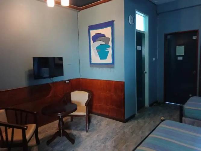 Номер уютно обставлен и оснащён необходимым, чтобы отдохнуть после долгого и насыщенного дня. Имеются телевизор. Перечисленные услуги есть не во всех номерах.