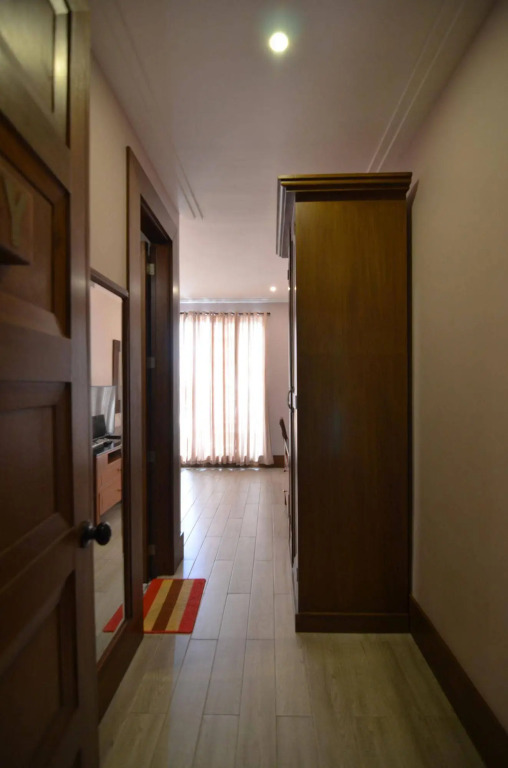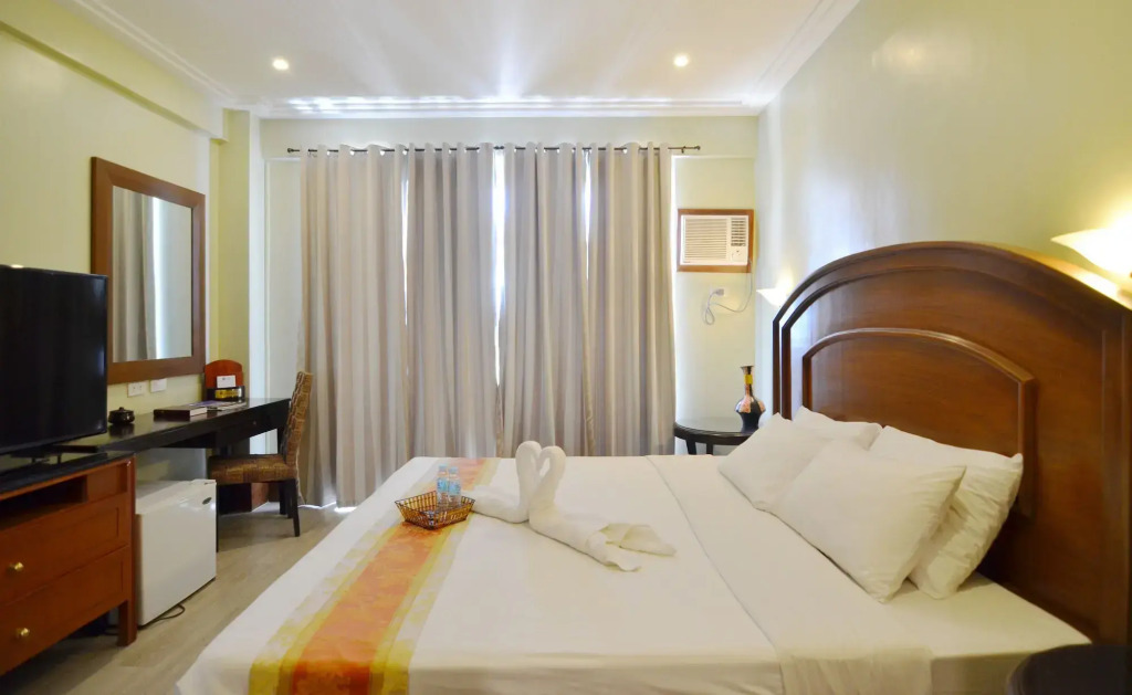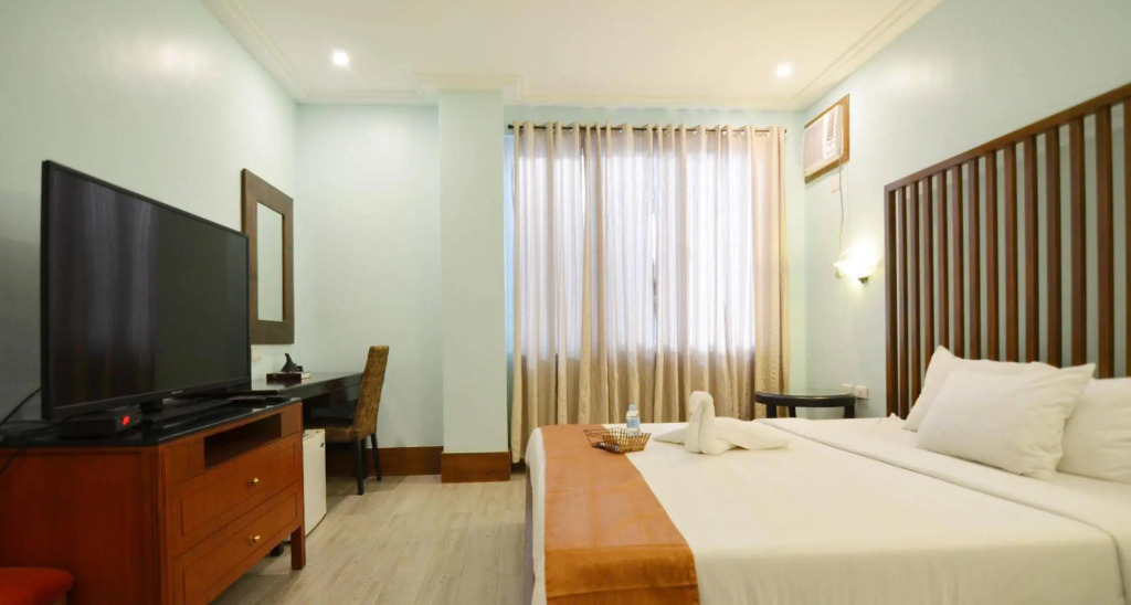 Номер уютно обставлен и оснащён необходимым, чтобы отдохнуть после долгого и насыщенного дня. Имеются телевизор и тапочки. Оснащение зависит от выбранной категории номера.