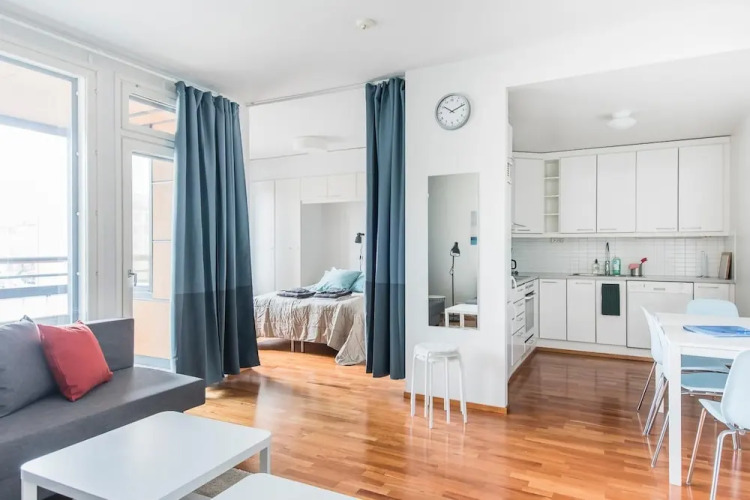 Отель Helsinki South Central Apt Hietalahti, адрес на карте Хельсинки, Hietalahdenranta 5c A7, с характеристиками номеров и доступностью онлайн бронирования на площадке vashotel.ru , цены проживания и удобства.