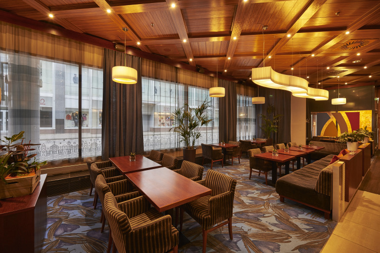 Обеденная зона в отеле представлена рестораном интернациональной кухни и баром, который приятно удивит вас разнообразием напитков и закусок. Каждое утро отель угощает гостей вкусным бесплатным завтраком с горячими блюдами по системе «шведский стол».