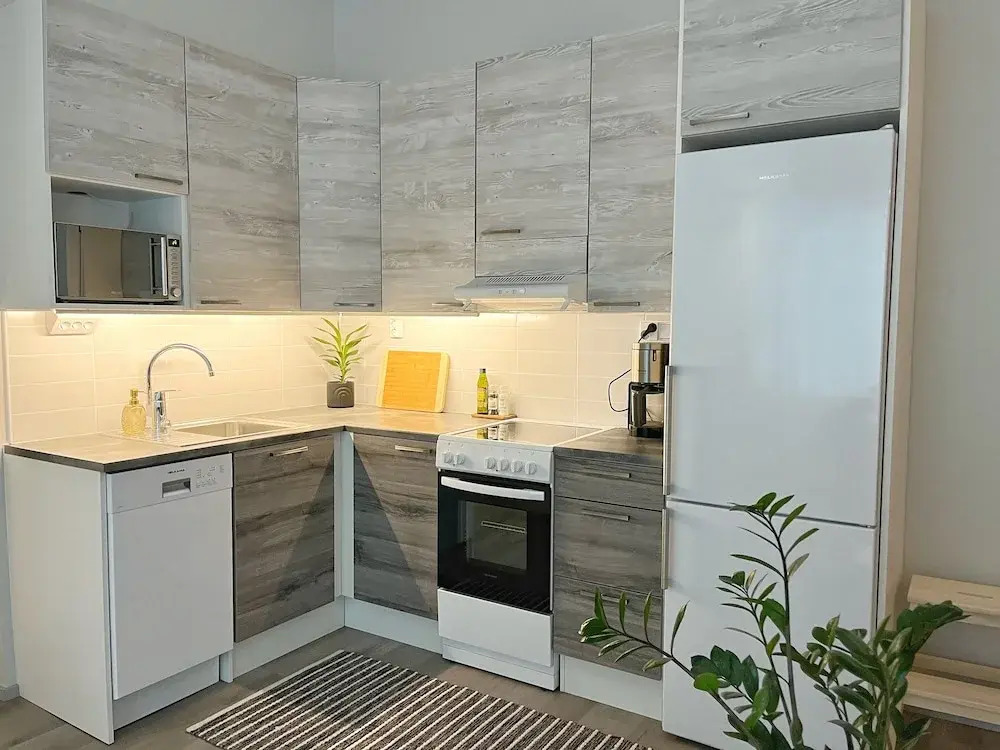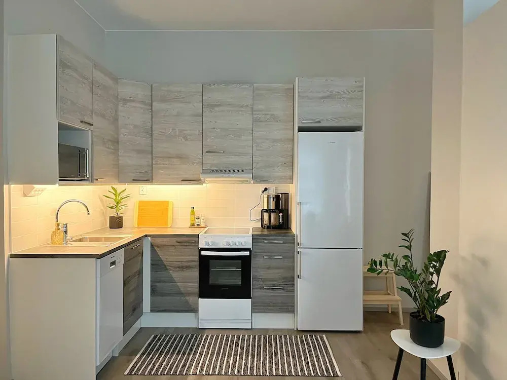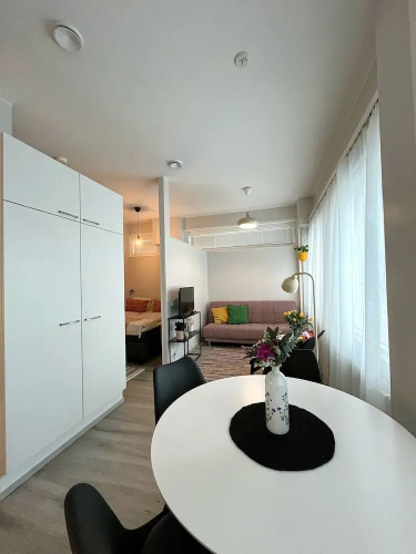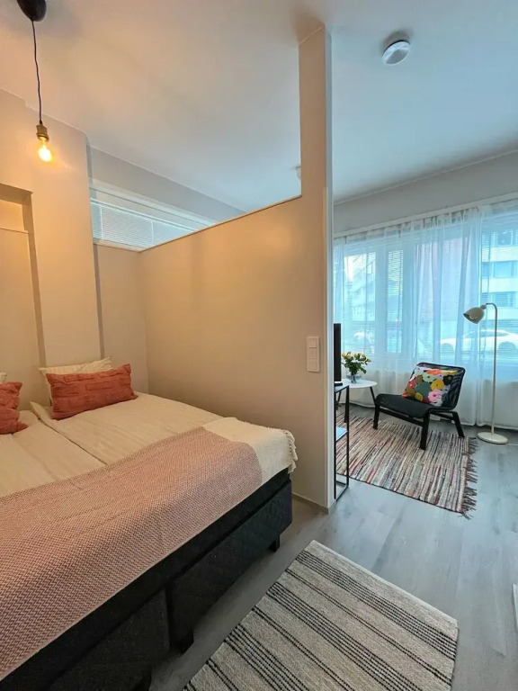 Отель Stylish 47m2 Studio Apartment, адрес на карте Лахти, 9 Vuorikatu, с характеристиками номеров и возможностью онлайн бронирования на сайте vashotel.ru , стоимость проживания и удобства.