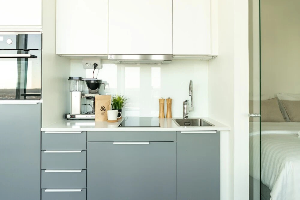 Отель New studio with views from 13th floor, адрес на карте Тампере, 4 Sorinsilta, с характеристиками номеров и доступностью онлайн бронирования на ресурсе vashotel.ru , стоимость проживания и удобства.