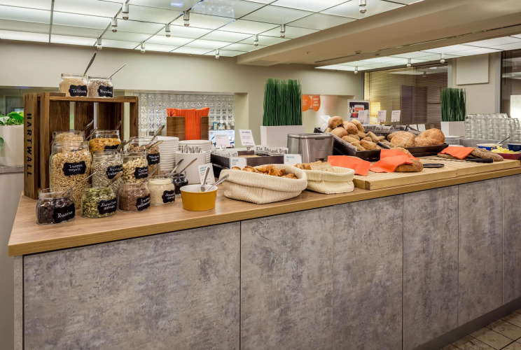 По утрам для постояльцев сервируется обильный завтрак. В ресторане в течение дня предлагаются блюда европейской кухни, а прохладительные напитки и легкие закуски ― в уютном баре отеля. Отдохнуть и расслабиться после трудового дня можно будет в оборудованном фитнес-центре или сауне.