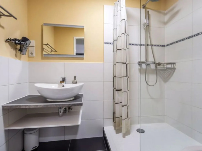 В номере вы найдёте душ и телевизор. Оснащение зависит от выбранной категории номера.