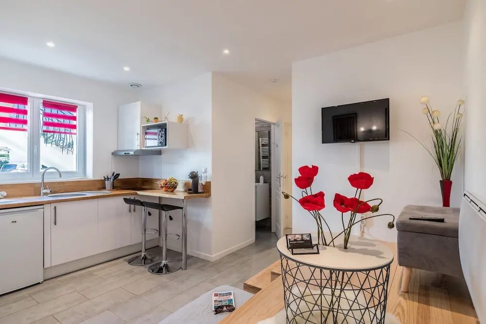 Отель Confort - Appartement Anglet, адрес на карте Англет, 1 Impasse Maharin, 64600 Anglet, France, с описанием номеров и доступностью онлайн бронирования на сайте vashotel.ru , стоимость проживания и удобства.