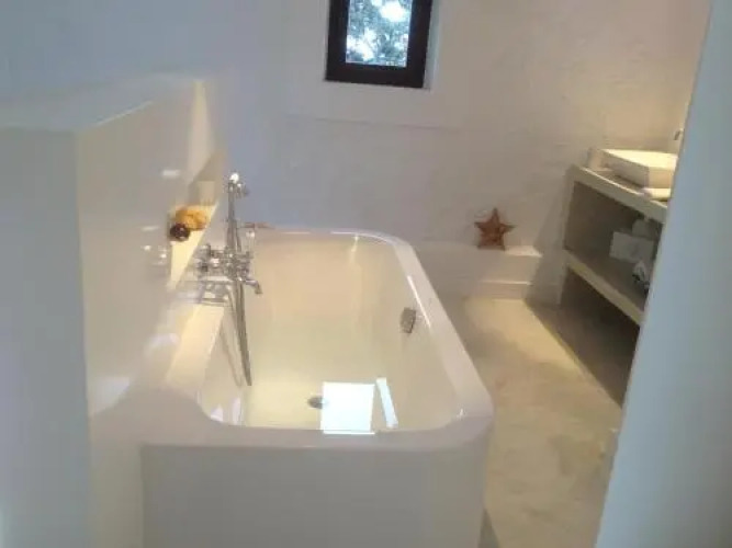Среди услуг для красоты и здоровья — массажный кабинет и солярий. Любителям спорта подготовили настольный теннис. Среди развлечений на территории — библиотека и площадка для барбекю. Здесь будем баловать себя водными процедурами: есть бассейн и открытый бассейн.