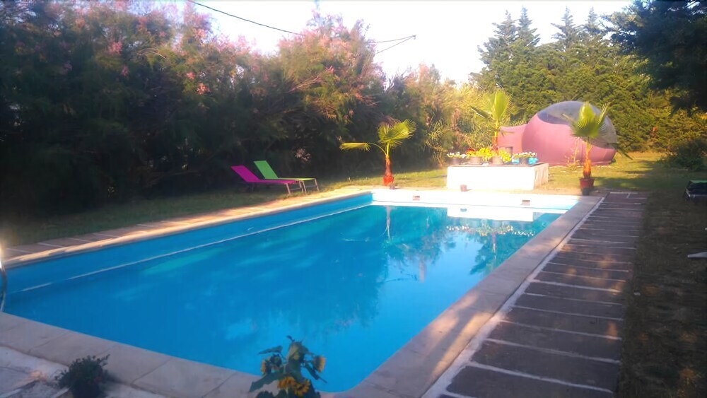 Отель Les Chambres Bulles Du Chateau Belvize, адрес на карте Биз-Минервуа, La Lecugne, с описанием номеров и правом онлайн бронирования на ресурсе vashotel.ru , стоимость проживания и удобства.