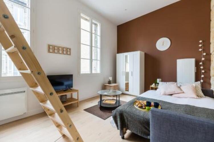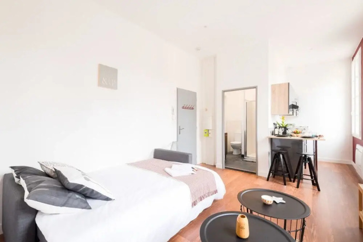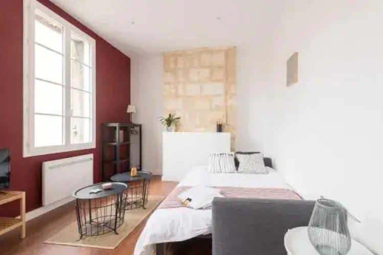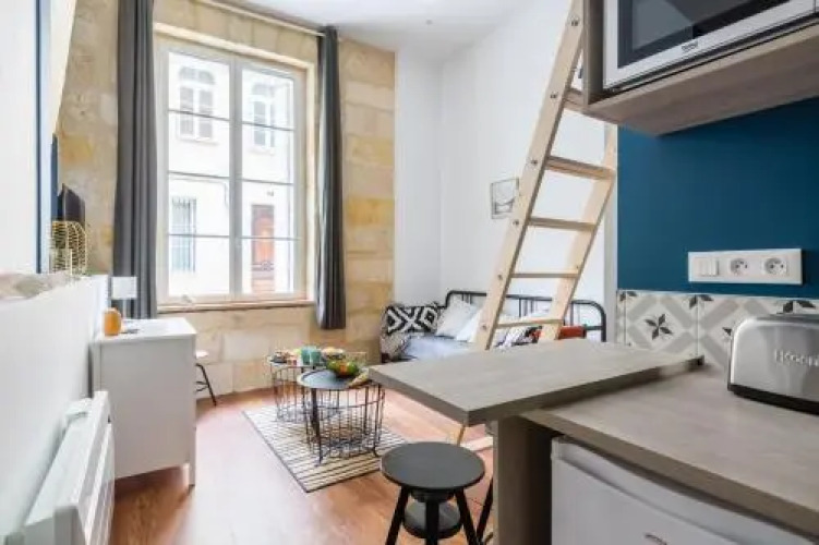 Отель Superb Renovated Studio in the City Center, адрес на карте Бордо, 5 Rue du Grand Rabin Joseph Cohen, с характеристиками номеров и доступностью онлайн бронирования на сайте vashotel.ru , стоимость проживания и удобства.