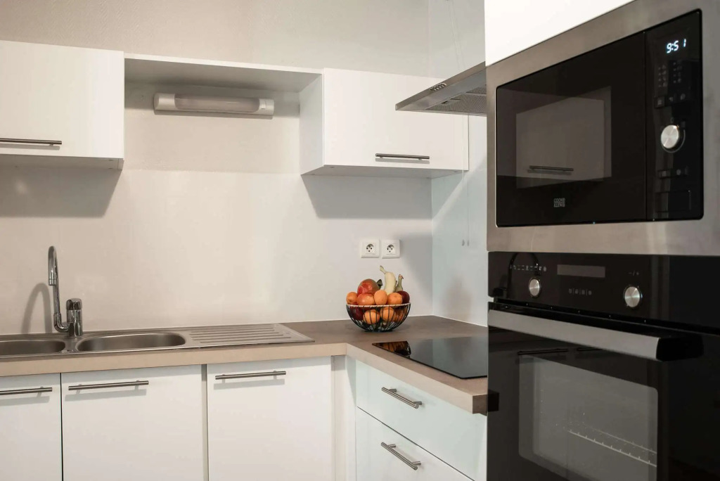 Всего в отеле 82 комфортабельных апартамента. Стандартная комплектация включает телевизор, телефон, также обеденный стол и стулья. Кухни полностью укомплектованы: к вашим услугам микроволновая печь, холодильник, чайник и посуда.