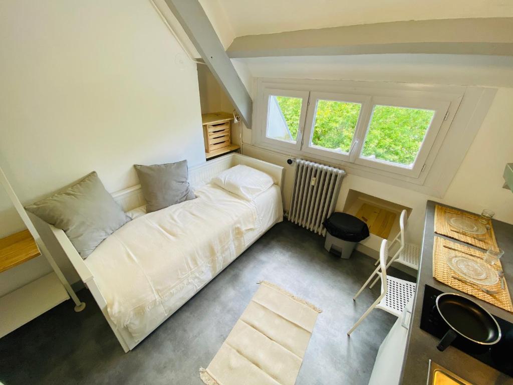 Отель STUDIO proche commodité et gare . Centre ville, адрес на карте Кан, LINK 21 Quai Eugène Meslin, с описанием номеров и возможностью онлайн бронирования на ресурсе vashotel.ru , цены проживания и удобства.