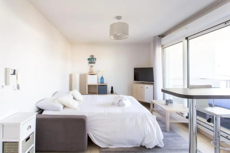 Подходящий вариант для большой компании: апартаменты «Air-conditioned studio with furnished terrace and parking» находятся в Каннах. Эти апартаменты расположены в 3 км от центра города. Рядом с апартаментами можно прогуляться. Неподалёку: Боулинг-клуб Warm'up, Пляж Бокка и Fun City.