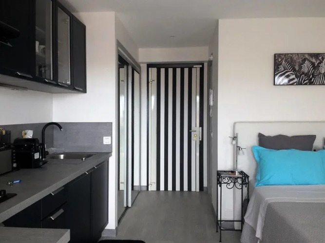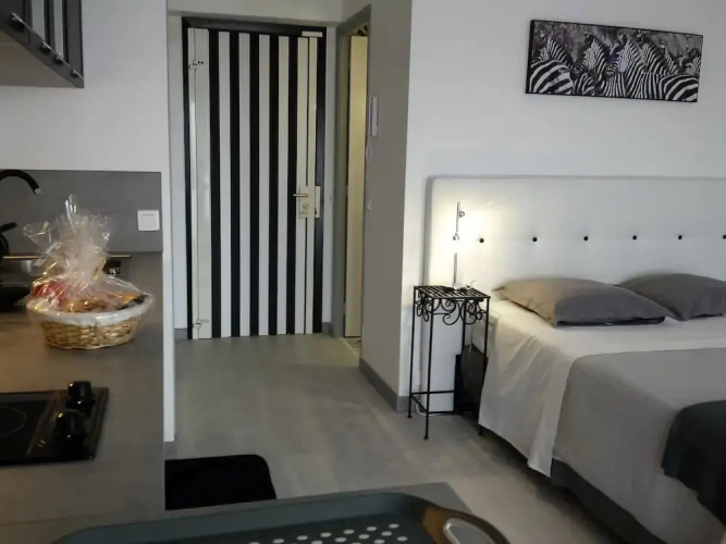Отель Brand New Studio Cannes Super Center, адрес на карте Канны, 3 Rue des Mimosas, с описанием номеров и доступностью онлайн бронирования на ресурсе ВашОтель.RU , цены проживания и удобства.