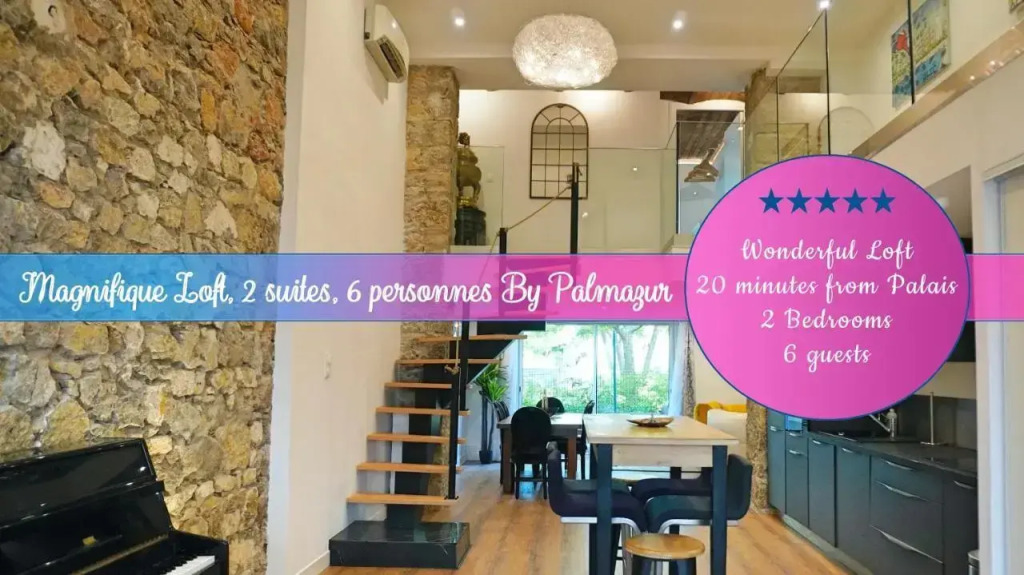 Отель Magnifique loft, 2 suites, 6 personnes By Palmazur 1 звезда, адрес на карте Канны, 5 Rue Pons, 06400, Cannes, France, с описанием номеров и возможностью онлайн бронирования на площадке vashotel.ru , цены проживания и удобства.