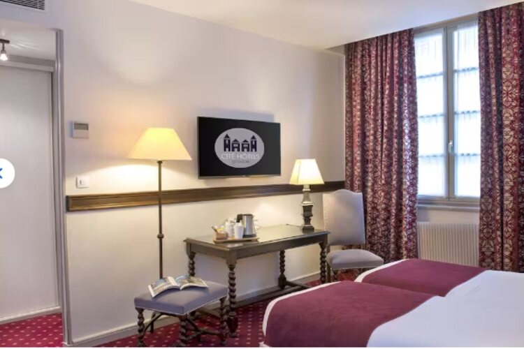Отель Hôtel Le Donjon - Coeur de la Cité Médiévale 4 звезды, адрес на карте Каркасон, 2 Rue du Comte Roger / 32 Chemin des Ourtets, с описанием номеров и возможностью онлайн бронирования на площадке vashotel.ru , стоимость проживания и удобства.