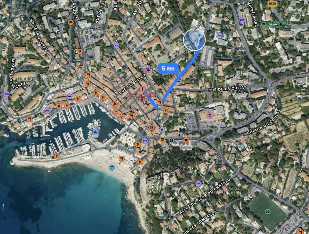 адрес на карте Кассис, 13 Rue Adolphe Thiers, с описанием