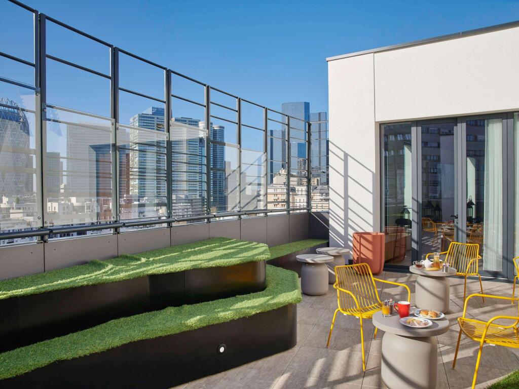 Отель Mercure Paris La Défense 4 звезды, адрес на карте Курбевуа, 18-30 Rue Baudin, с описанием номеров и доступностью онлайн бронирования на сайте ВашОтель.RU , цены проживания и удобства.
