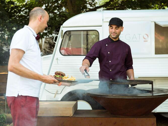 В отеле есть ресторан с террасой, где по утрам для гостей сервируется завтрак. Вы будете приятно удивлены широким выбором изысканных блюд. Вечером можно перекусить в баре, где предлагается большой выбор напитков и закусок.