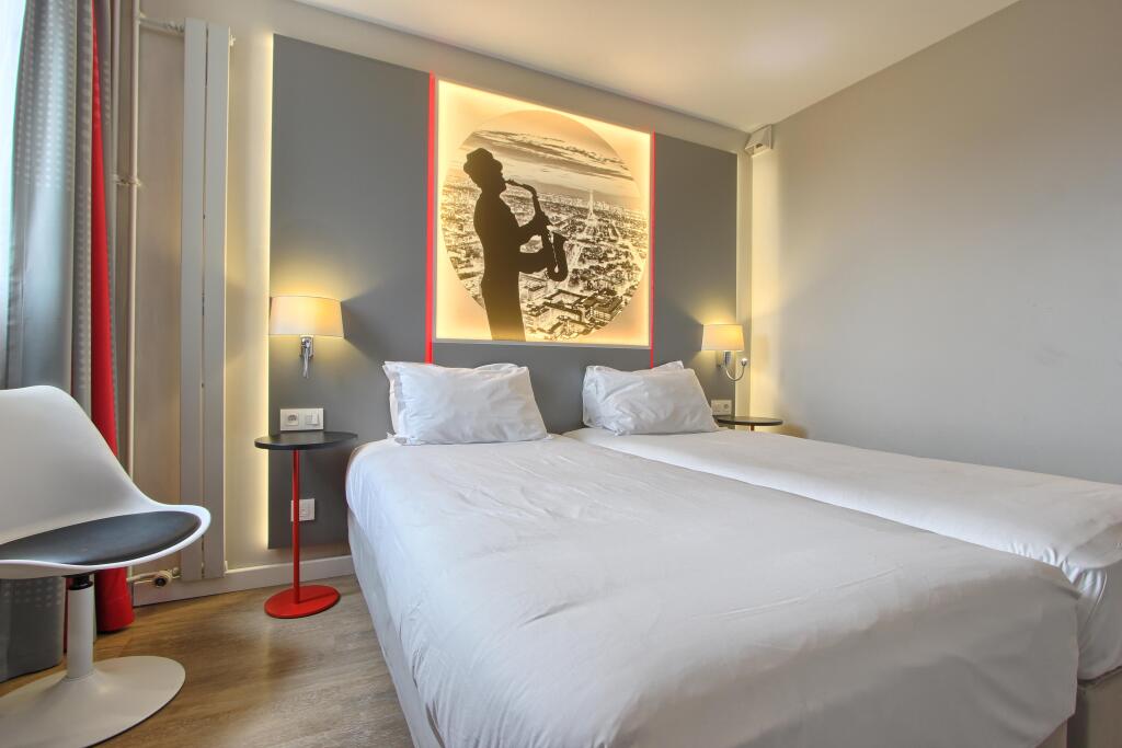 Отель Kyriad Paris Nord - Porte de Saint Ouen 3 звезды, адрес на карте Сент-Уэн, 9 Rue la Fontaine, с характеристиками номеров и доступностью онлайн бронирования на ресурсе ВашОтель.RU , стоимость проживания и удобства.