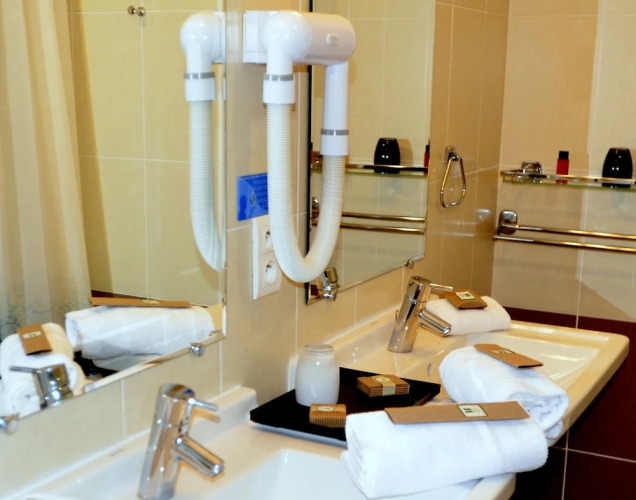 В номере вас будут ждать душ и телевизор. Оснащение зависит от выбранной категории номера.