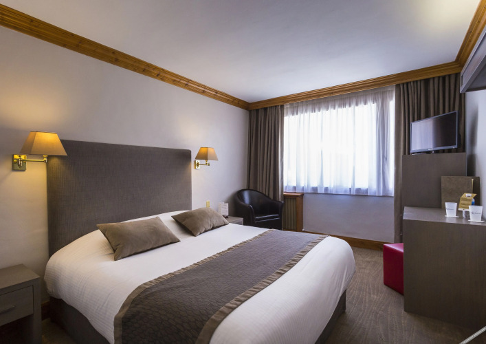 Отель Odalys Hotel New Solarium, адрес на карте Куршевель, 144, Rue Emile Allais, Quartier du Jardin Alpin, с описанием номеров и возможностью онлайн бронирования на ресурсе vashotel.ru , стоимость проживания и удобства.