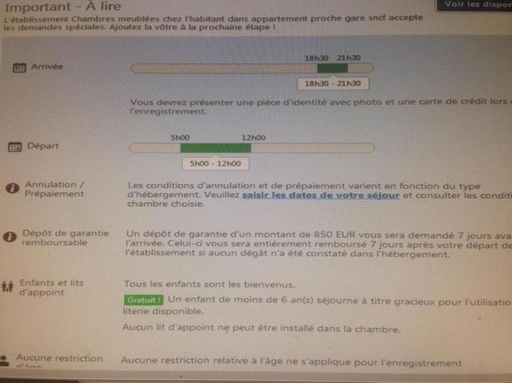 Guests are required to show a photo identification and credit card upon check-in. Please note that all Special Requests are subject to availability and additional charges may apply. This property will not accommodate hen, stag or similar parties. Please inform Chambres meublées chez l'habitant dans appartement proche gare sncf in advance of your expected arrival time. You can use the Special Requests box when booking, or contact the property directly with the contact details provided in your confirmation. A damage deposit of EUR 850 is required. The host charges this 7 days before arrival. This will be collected by PayPal. You should be reimbursed within 7 days of check-out. Your deposit will be refunded in full via PayPal, subject to an inspection of the property. Please note that guest rooms doors do not have a lock. Managed by a private host